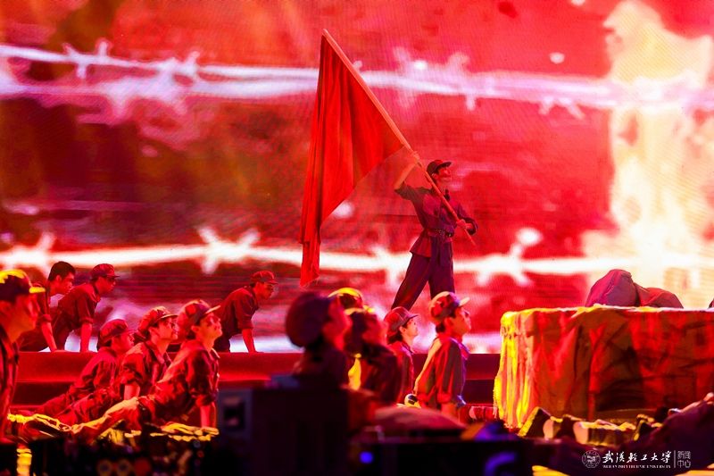 湖北民歌《妹娃要过河》唱响荆楚韵味,唤起中华民族共同的文化记忆。曾参与“九三”阅兵民兵方队的食品科学与工程学院2023级学生王吉祥,也通过视频为全体新生送上祝福。2025级新生以舞蹈《永不忘》踏歌登场,用赤诚的肢体语言,将历史记忆与青年担当在舞台深处交融共鸣。
