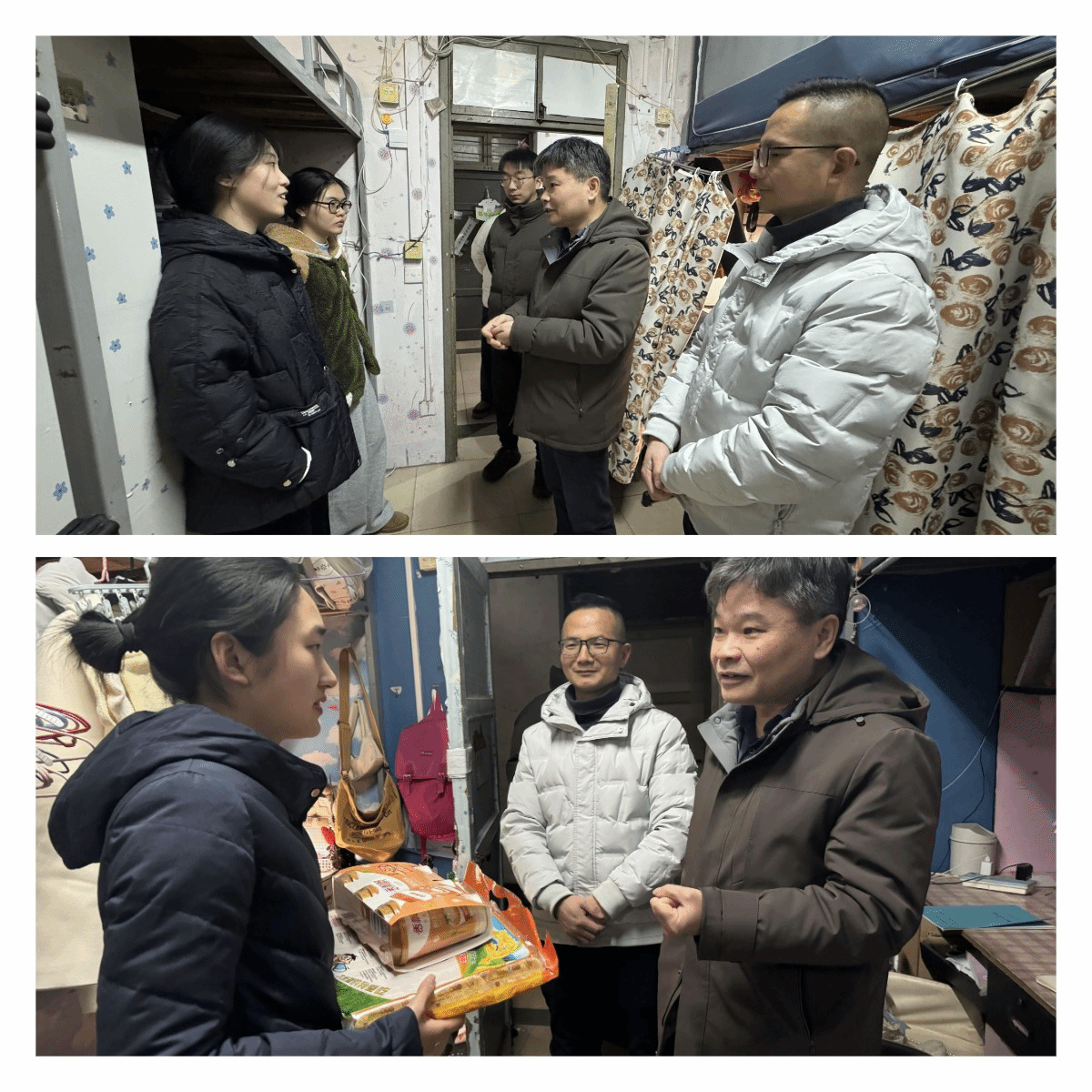 程家才特别关心同学们的住宿条件和生活保障情况,详细询问了就餐、热水供应等问题,并叮嘱同学们要注意出行安全、寝室用电安全,保持环境卫生,做好流感预防,营造温馨和谐的宿舍氛围。