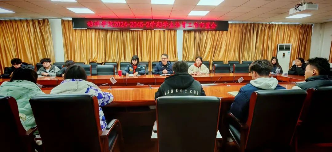 近日,动科学院在常青校区笃学楼401会议室召开新学期学生体育工作部署会。动科学院党委副书记田兴恒、校体育部老师龚艳、动科学院分团委书记董田歌和院学生会体育部全体成员参会。会议由院分团委书记董田歌主持。