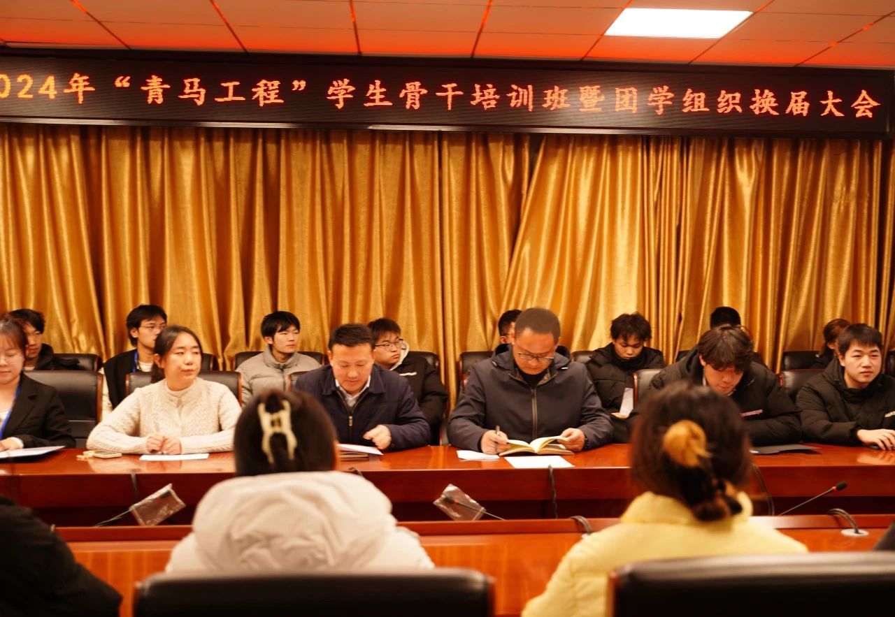 12月18日晚,学院2024年“青马工程”学生骨干培训班暨2024—2025届团学组织换届大会在笃学楼401会议室举行。院党委书记李斌斌、副书记田兴恒、团委书记董田歌以及学院团委、学生会、青年志愿者协会、科技创新与创业协会、新媒体中心的60余名学生骨干参加会议。会议由团委副书记余航主持。