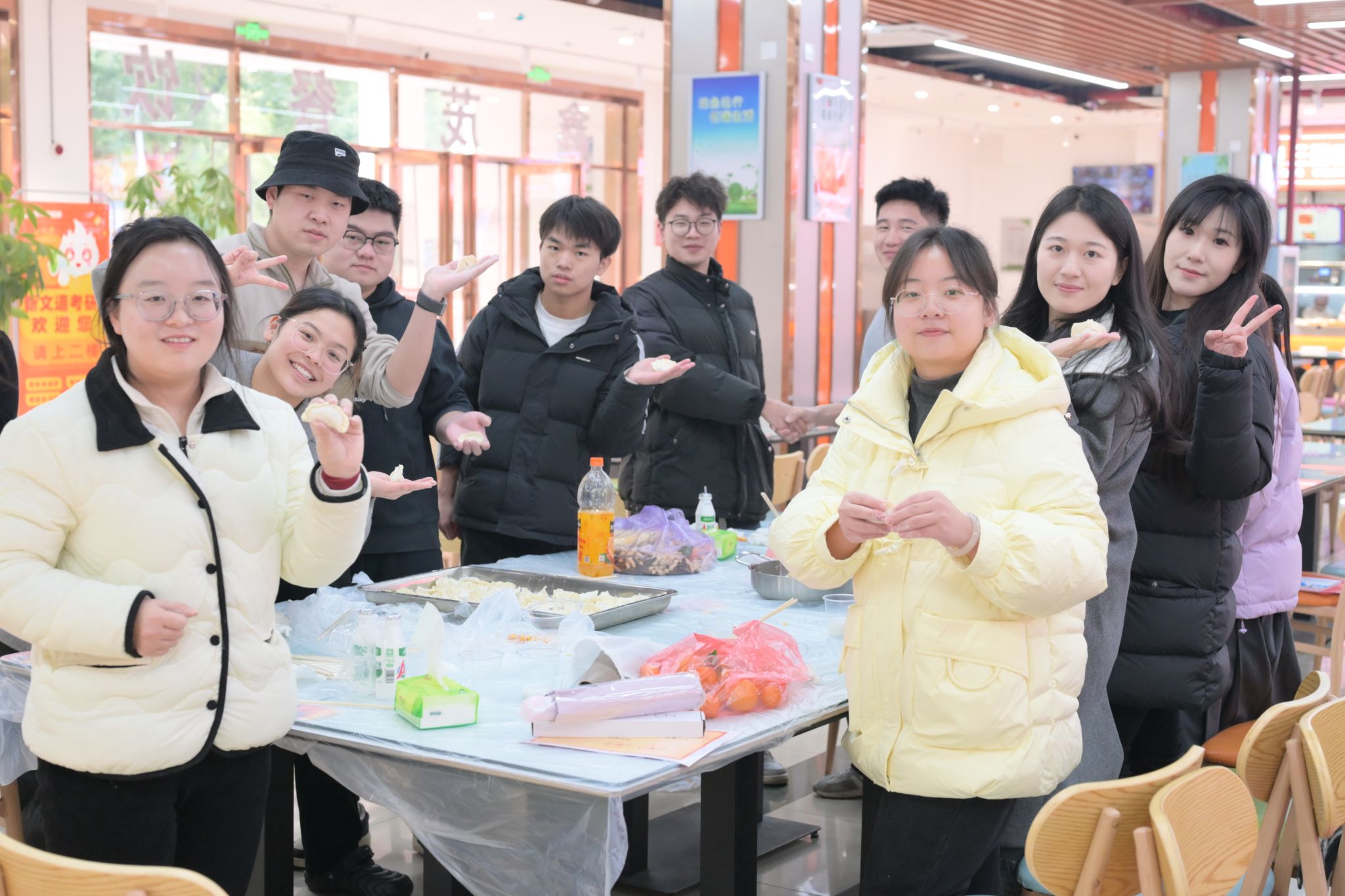 随后,本次活动的重头戏“包饺子大赛”将现场带入了高潮,在比赛过程中,大家各展身手,包出了形状各异、各具特色的饺子。老师们也和同学们一起动手包饺子,给同学们传授了包饺子的手法和技巧。最终,2023级研究生孙亚敏同学在限时2分钟内成功包出19个饺子,夺得此次包饺子大赛冠军。当一锅锅热气腾腾的饺子端上桌时,同学们的脸上均露出了满足的笑容。他们品尝着自己亲手包制的饺子,感受着劳动的成果和节日的温暖。