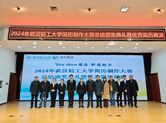 12月26日下午,2024年简历制作大赛总结颁奖典礼暨优秀简历展演活动在常青校区科学报告厅举行。武汉人力资源协会、海大集团、益海嘉里、金山软件、杰克股份、东阳光药业等企业HR担任评委。学校相关职能部门负责人,各学院党委书记、副书记、分团委书记、辅导员、大赛指导老师和学生代表共300余人参加活动。