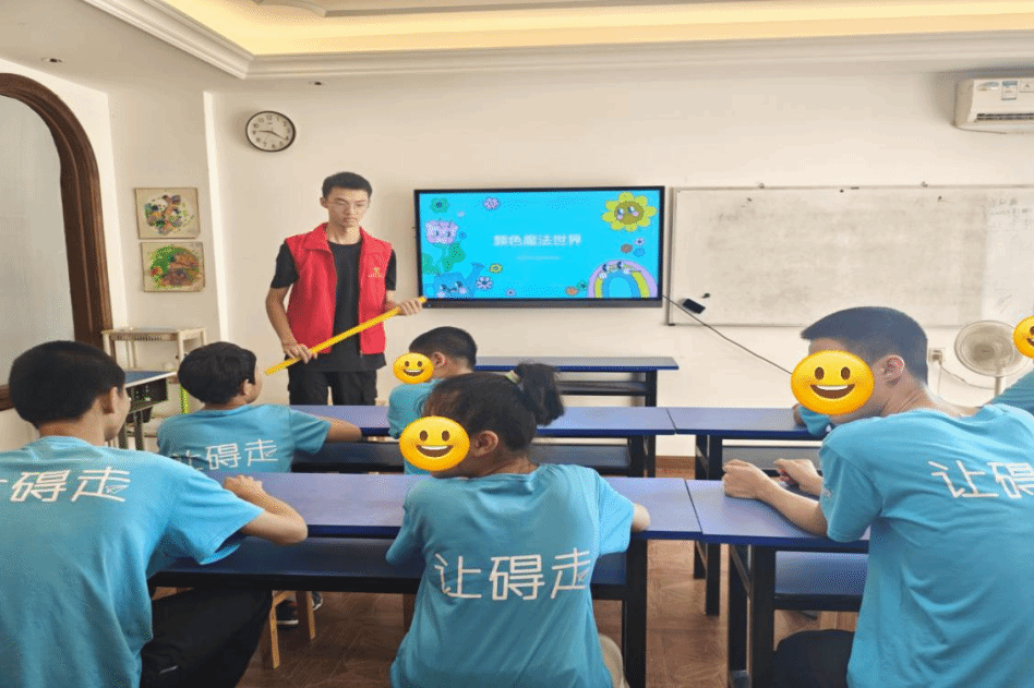 在课堂环节,志愿者精心制作多媒体课件,向儿童讲授趣味性知识,有效拓展其认知视野;同时,积极配合教师开展生活自理技能训练、体育课程、音乐活动及互动游戏等,涵盖指导儿童整理个人物品、组织户外体育活动以增强体能、带领音乐互动及团体游戏等内容,全程以专业态度和饱满热情陪伴儿童度过充实的时光。