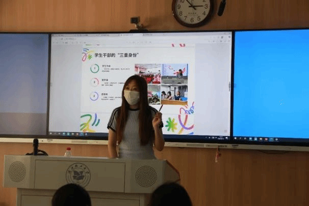 聚焦专业学习,夯实基础根基;投身竞赛实践,锤炼综合能力;规划未来方向,明晰发展路径。学长学姐结合自身经历展开针对性讲解。学生干部代表田晨凤围绕“学生工作与学业平衡”主题,以班级管理、学院活动组织实例为切入点,强调“服务意识与责任担当”的观念,为新生参与学生组织提供实践参考。学科竞赛分享板块,获国赛一等奖的李宇航学长,展示获奖作品,从选题方向、团队协作、作品打磨三个方面拆解备赛流程,直观呈现“课程知识转化为竞赛成果”的方法。苏灿学长围绕新生关心的学分、志愿活动、大学生活与成长展开分享。