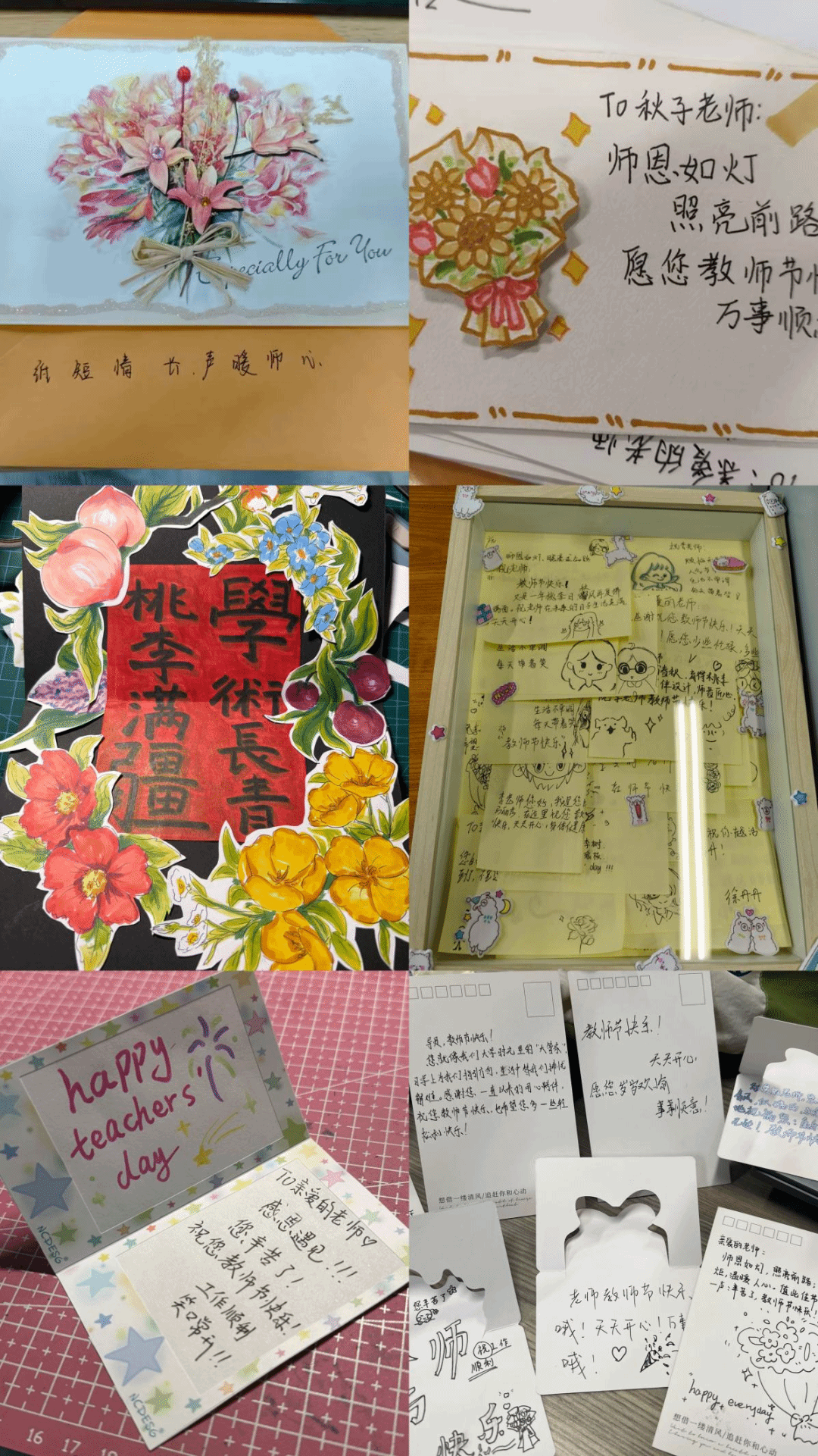 致谢师恩传薪火,共赴强国新征程。为营造尊师重教浓厚氛围、传递设计学子感恩之情,学院分团委发起“纸短情长,声暖师心”手工贺卡制作、鲜花包装设计等系列教师节特别活动。
