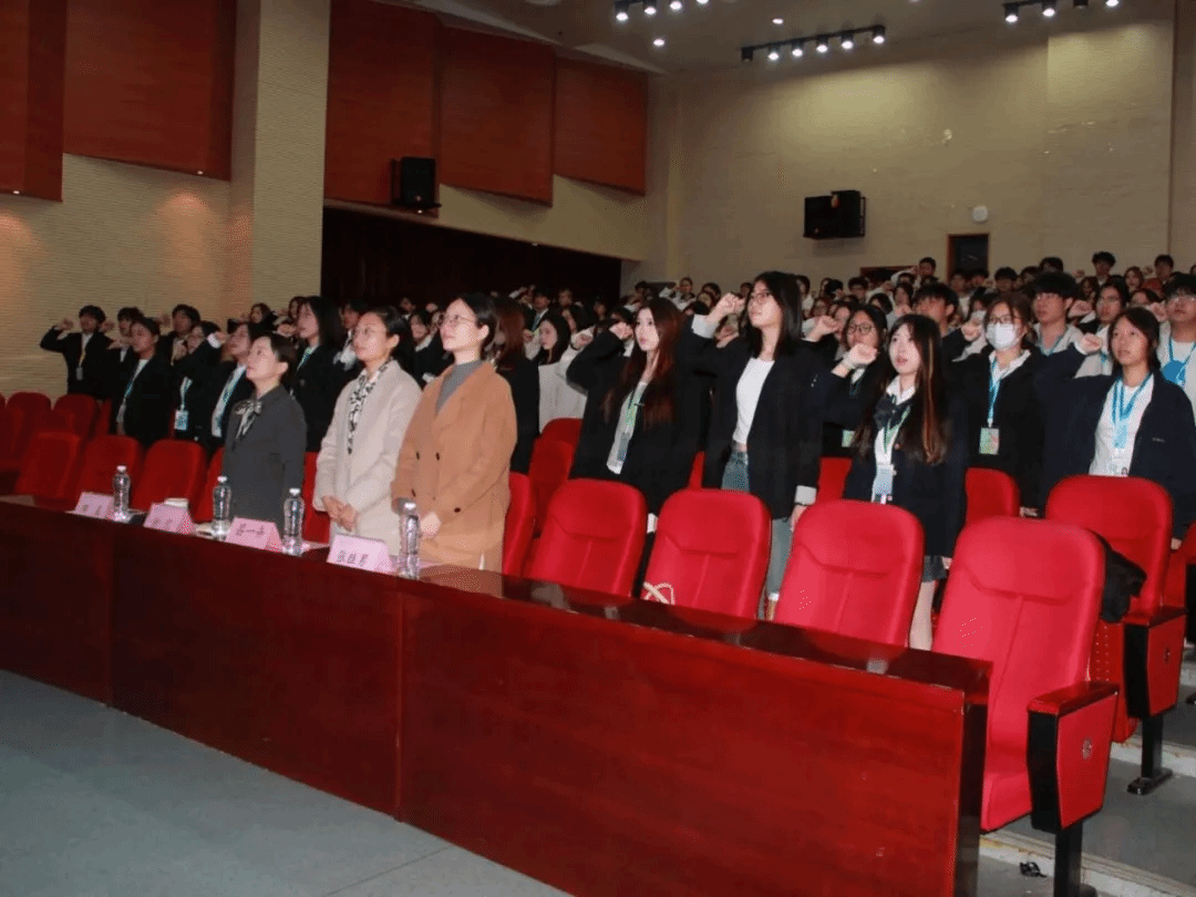 在分团委书记田星老师和分团委副书记黄琪、申一彤的带领下,全体学生组织成员庄严宣誓,承诺将恪尽职守,践行“全心全意为同学服务”的宗旨。