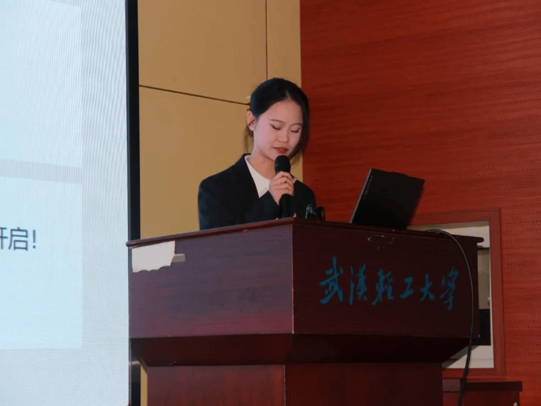 分团委副书记兼新媒体中心主席团秘书长黄琪、学生会主席团执行主席卢炫、青年志愿者协会主席团秘书长陶怡萱、兵心飞扬协会会长沈娜先后上台,就各自组织的工作成果与未来规划进行阐述,并就老师现场提出的问题进行答辩交流。