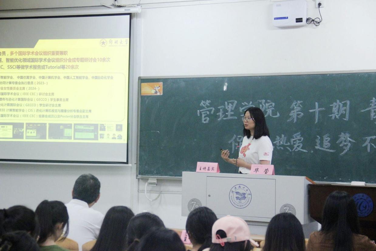 5月23日下午2:30,管理学院于文管楼209成功举办了第十期青年讲坛。本次讲坛以“保持热爱,追梦不休”为主题,邀请郑州大学学科特聘教授、博导、国家高层次青年人才毕莹(2009级物流管理专业优秀校友)作为主讲。活动由谭勇教授主持,管理学院各年级辅导员出席、管理学院学生代表现场参与。