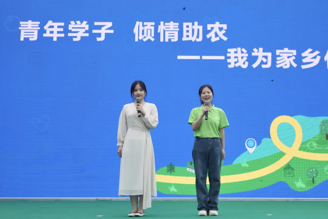 开园节上,还播放了由师生团队制作的百里洲公益宣传短片《我在百里洲等你》,我校宜昌学子金雪玲与百里洲本地高三毕业生黄清丽代表青年学子携手上台,共同推介家乡和百里洲砂梨,青年学子共同喊出“我为家乡代言,我在百里洲等你!”的口号将活动推向了高潮。
