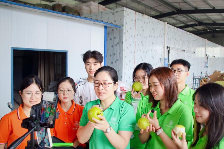 百里洲镇,以其独特的自然环境和悠久的种植历史,被誉为“砂梨之乡”,其产出的百里洲砂梨是中国国家地理标志产品,享誉全国。然而,如何进一步拓宽市场,提升品牌影响力,成为当地农户面临的共同难题。7月8日,在砂梨开园前夕,团队师生入驻百里洲梨园,以智慧电商为砂梨“引流”“破圈”。为打破传统销售模式的局限,师生通过与主流电商平台合作,帮助当地建立百里洲砂梨官方旗舰店,在线上各大平台统一品牌形象和销售策略。团队还通过直播助农的方式开展“矩阵式”线上营销,每日在全平台开展多场直播带货,并集结了一批当地返乡大学生共同帮助当地梨农开展电商培训,让更多“新农人”有效利用直播获益。