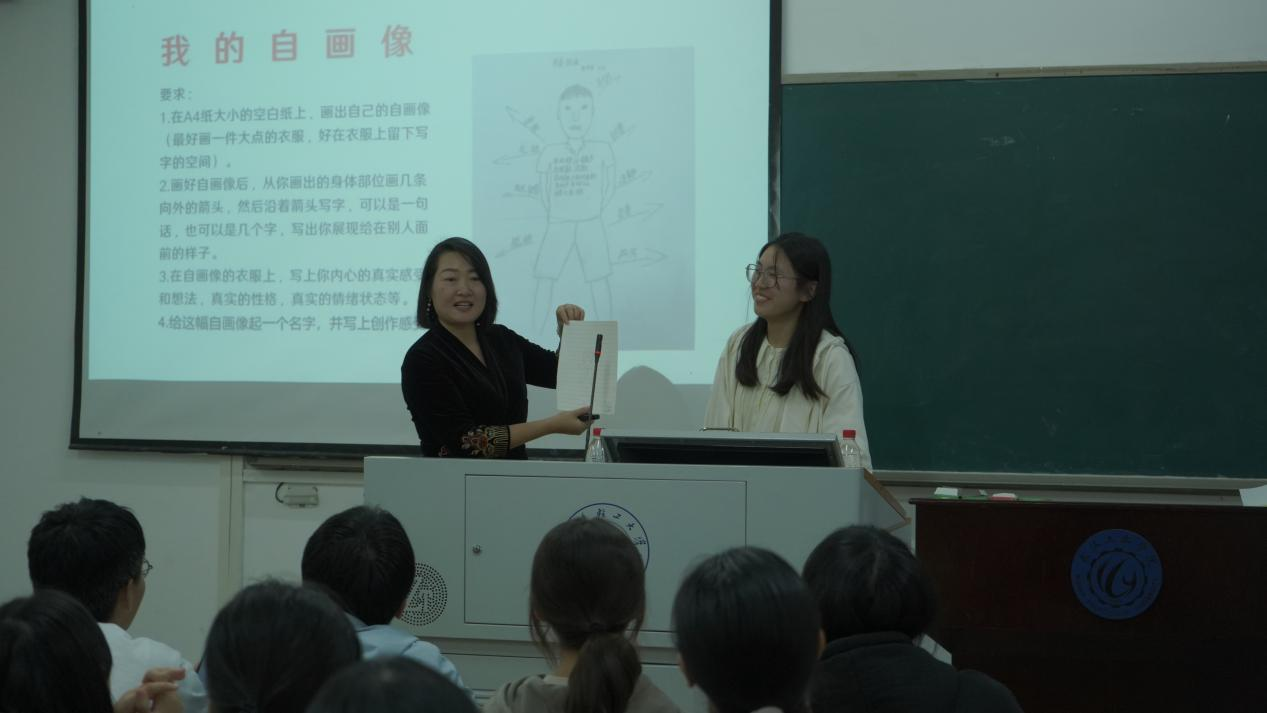 讲座伊始,李好老师从心理视角出发,强调了自我认知在职业规划中的重要性。她介绍了性格检测、实用动机、绘画心理以及职场测试等多种方法,帮助学生更准确地了解自己的性格特点和职业倾向。同时,为了增加互动性和趣味性,讲座还设置了自画像环节,通过“我的自画像”绘画心理分析,李老师引导学生们探索自己的内心世界,从而更好地认识自我。