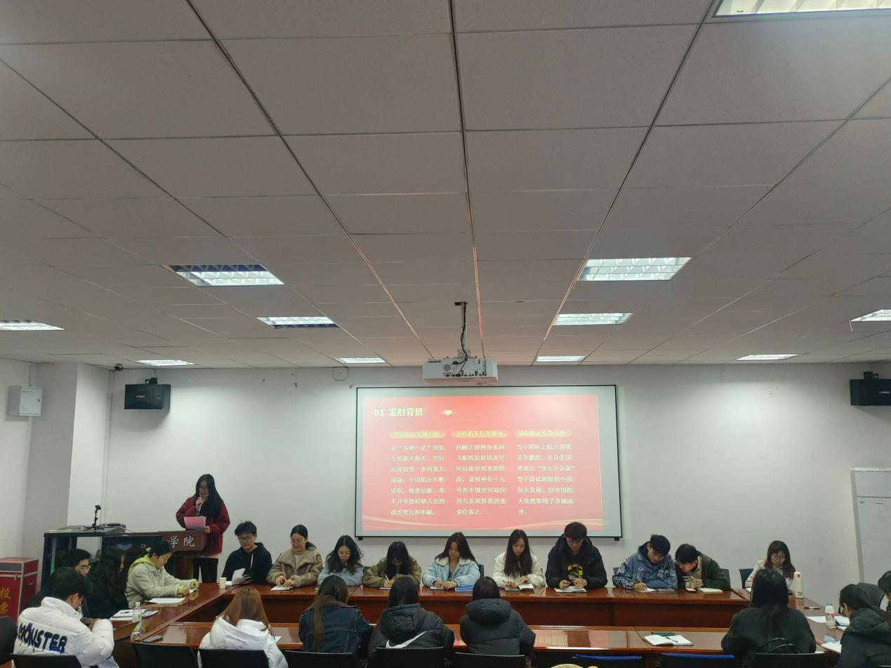 10月30日04时27分,神舟十九号载人飞船在酒泉卫星发射中心成功发射,开启太空探索新征程。为聆听时代跫音,发扬航天精神,进一步提升学生骨干的工作能力和综合素质,11月29日,管理学院组织青马工程学生骨干在文管楼421会议室进行学生骨干培训活动。会议由团委学生会成员李静怡主持。
