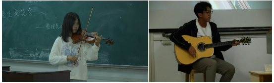 交流会上各班级还准备了互动游戏和才艺展示。看图猜成语、看图猜觉醒年代人物、击鼓传花等小游戏拉近了学长学姐与新生们的距离,歌曲演唱、小提琴独奏、吉他展示也激发着学长学姐与新生们的兴致,现场气氛十分活跃,其乐融融,活动在热烈的掌声中落下帷幕。