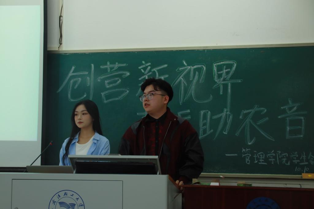 为提升同学们的创新协作能力,激发同学们参与创新比赛的热情,在2024年“长江商报第21届大学生创业大赛”来临之际,管理学院于10月10日在知行楼101教室举办了“创营新视界,青听助农音”沙龙分享会。