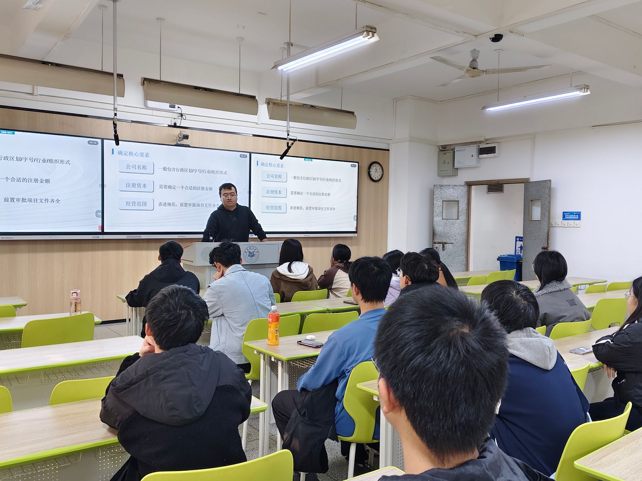 本次活动特邀科技创新与创业协会会长李鹏宇担任主讲,他以“前期准备—正式注册—后续运营”为清晰脉络,将公司创立全流程化繁为简,从核心要素明确、组织架构搭建、必备文件准备,到注册渠道选择、营业执照领取,再到刻章、开户、税务登记等合规运营关键步骤,均给出了通俗易懂的实操指引。