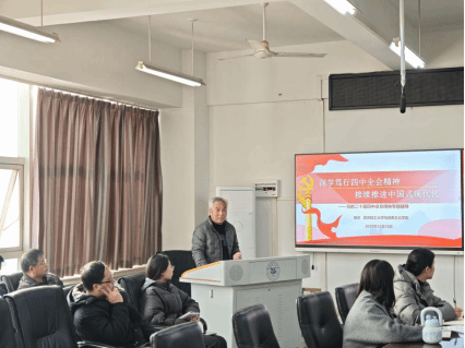 为深入学习贯彻党的二十届四中全会精神,根据校党委整体安排,12月18日下午,学校马克思主义学院院长胡沫教授在科教楼809室,为食品学院全体教职工作题为“深学笃行四中全会精神 接续推进中国式现代化”的专题辅导报告。食品学院党委书记黄继春主持报告会。