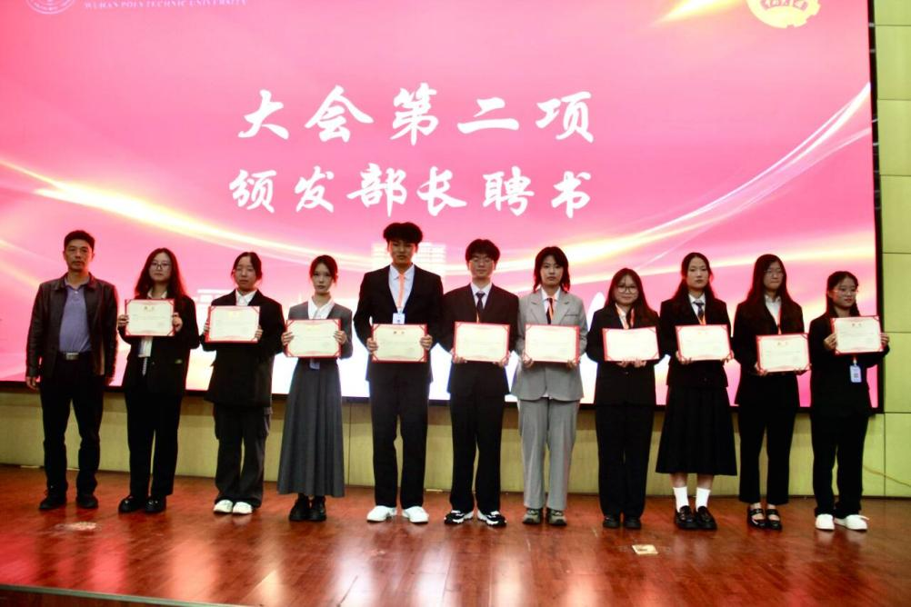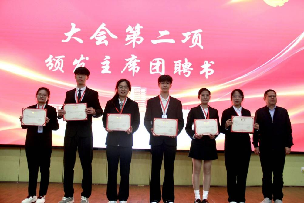 与会领导为第十四届学生会主席团成员、各部门部长分别颁发聘书。