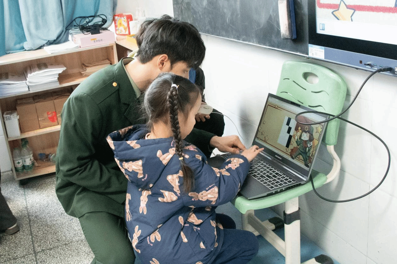 活动中,计算机专业志愿者为小朋友带来的自主编程的网页版游戏——“军歌填词”和“急行军反应测试”让课堂气氛异常活跃,赢得了小朋友们“哇”声一片。