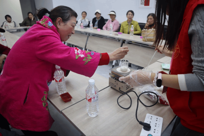 活动伊始,志愿者引导到场老人有序就座,并逐一摆放好皂基、精油、模具等手工制作材料。志愿者以“手工肥皂制作——清洁与健康的化学之旅”为主题引入,明确活动核心主旨,随后围绕肥皂的历史起源、去污原理及环保价值展开详细讲解,让老人直观了解生活中的化学知识。