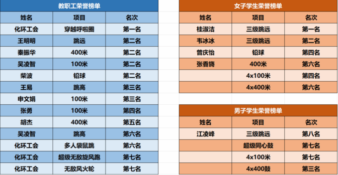 经过激烈角逐,化环学院再创佳绩:学生精神文明奖,学生团体总分第八名,教师团体总分第四名。