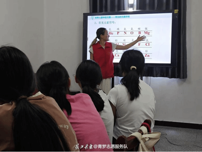 为拓宽乡村儿童知识视野,激发科学探索热情,武汉轻工大学青梦志愿服务队于2025年7月18日奔赴汉川市田二河镇,开展化学科普课堂活动。本次活动以古代、现代、世界三重视角为脉络,带领孩子们探秘奇妙的化学元素世界。