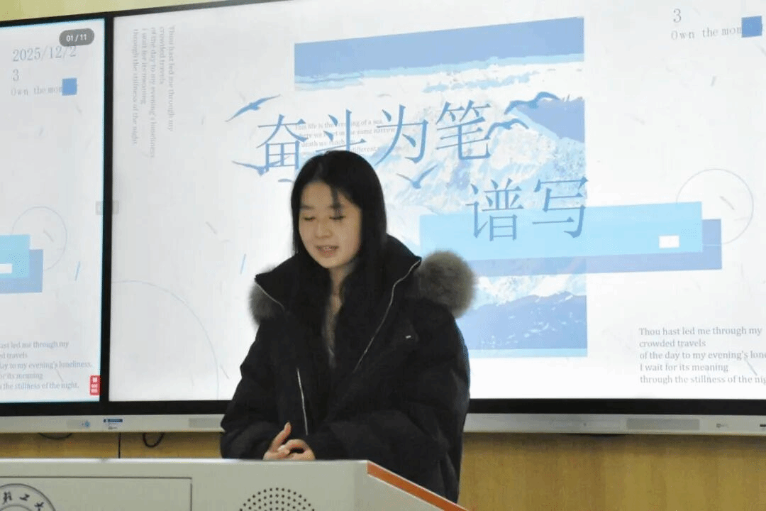 广告学2303班李静妍、汉语言文学2302班庄甜敏与网络与新媒体2301班盛宏瑞三位国家奖学金获得者代表进行交流发言。三位同学围绕课堂学习、学科竞赛、科研实践等方面,系统介绍了大学阶段的成长路径与方法。他们强调主动学习、持续积累的重要性,并鼓励新生勇于尝试、在实践中锻炼能力,通过扎实努力逐步实现自我突破,为全体同学提供了具有普遍参考价值的学习经验与发展启示。