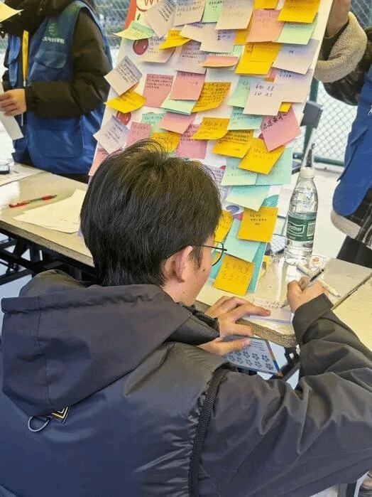 现场特设主题展板,参与者在便利贴上认真书写自己对志愿精神的理解和对志愿活动的感悟,将具体服务中获得的情感体验与成长思考,凝练为真挚的文字。展板上,色彩各异的纸片,逐渐拼贴出一幅生动的青春志愿图谱。方寸展板,成为连接行动与思考、个人与集体的精神桥梁,激励着更多青年加入志愿服务的行列。