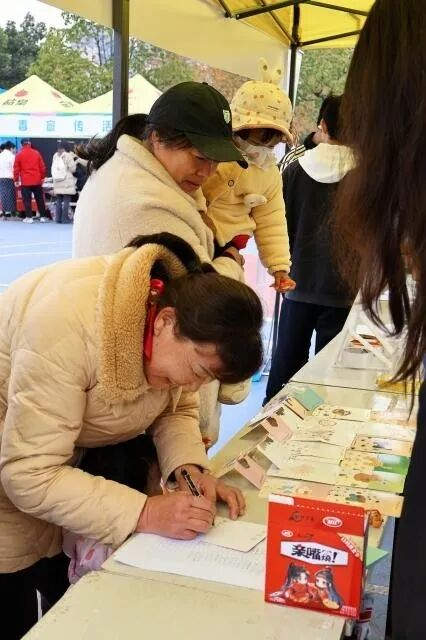 展位前,同学们有序领取贺卡,伏案写下真挚的祝福。这些承载心意的贺卡,将由负责人统一收存,于后续志愿活动中送往自闭症儿童和图书馆绘本阅读活动现场的孩子们手中。活动以“书写——传递”的方式,完成了一场从指尖到心间的温暖接力,文传学子将人文关怀化为具体行动,文字点亮童心,以行动温暖社会。