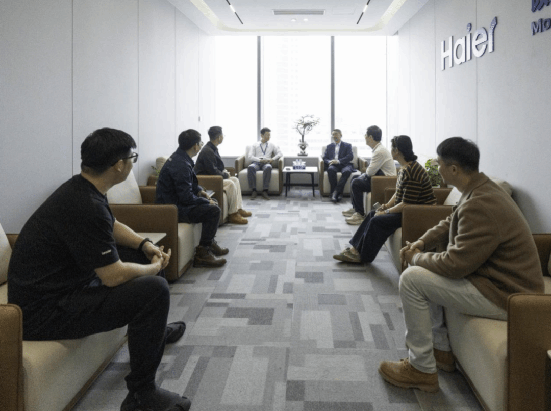 随后,校企双方围绕 “产业发展与人才培养” 主题召开座谈会。会上,海尔智家 AI 直播中心负责人结合企业发展规划,介绍了当前直播电商行业的发展趋势,以及企业在 AI 技术赋能直播、全链路数字化运营等方面的布局,并提出了对 “懂技术、善策划、会运营” 的复合型新媒体人才的迫切需求。